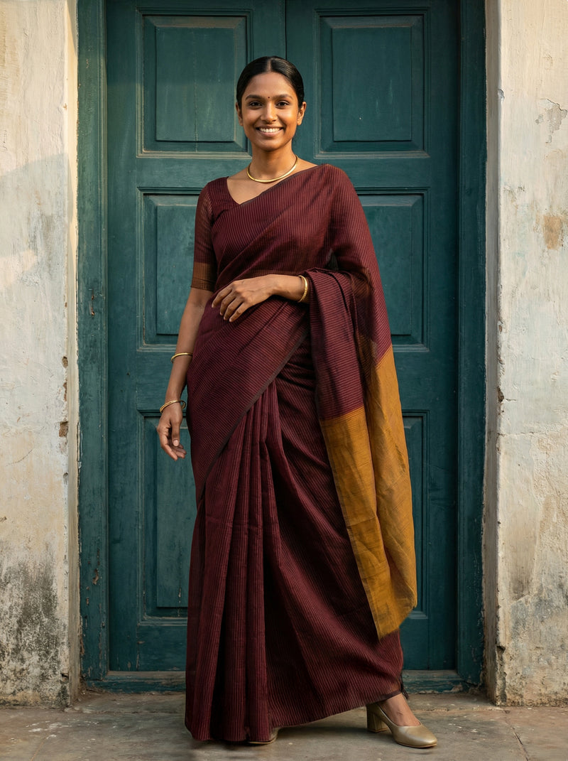 Elevate your ethnic wardrobe with this stunning synthetic maroon saree, featuring an intricate fine stripe pattern that adds sophistication to any occasion. Crafted from durable synthetic fabric, this traditional saree offers easy maintenance and long-lasting wear. The rich maroon hue complements all skin tones, while the delicate striping provides visual depth and elegance. Perfect for festivals, celebrations, or everyday traditional styling, this saree combines timeless design with modern practicality. Drape with confidence and grace.