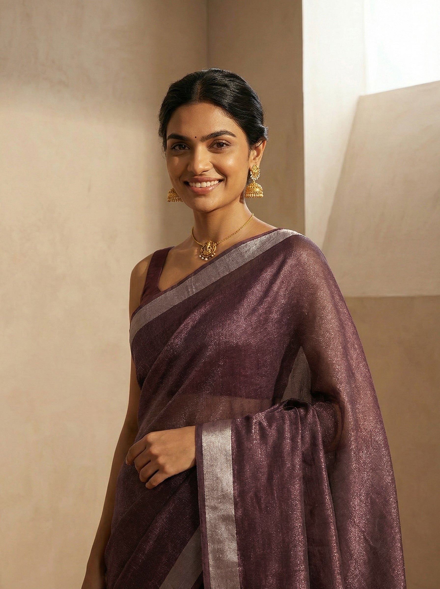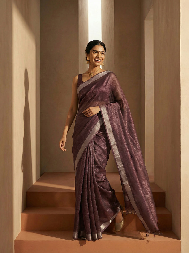 Elevate your everyday elegance with this synthetic purple saree, crafted for modern comfort and timeless style. The minimal plain design offers versatility, making it perfect for casual gatherings, office wear, or festive occasions. The smooth synthetic fabric ensures easy maintenance and durability, while the rich purple hue complements all skin tones. Drape it effortlessly and enjoy a sophisticated look that transitions seamlessly from day to evening. An essential addition to any saree collection.