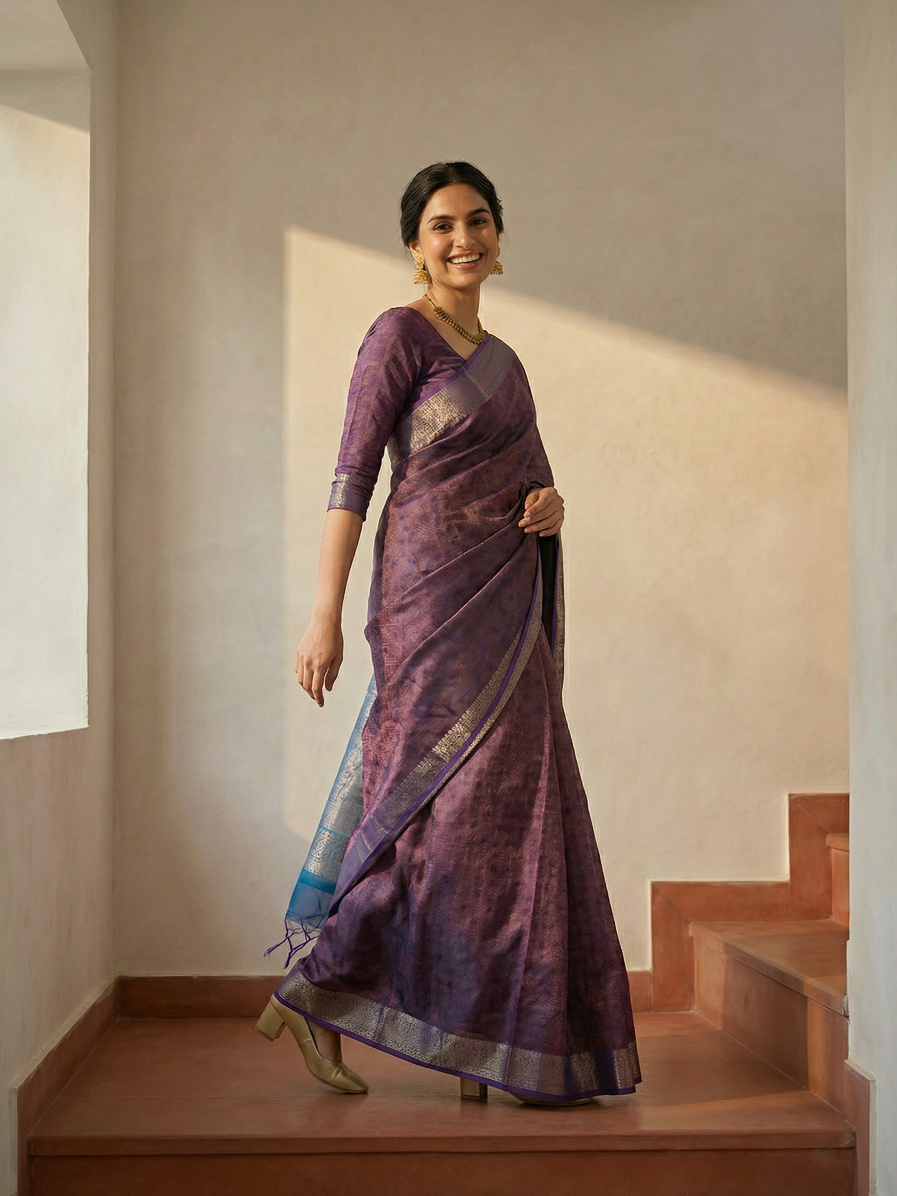 Embrace tradition with this captivating purple saree, adorned with intricate woven detailing that reflects authentic craftsmanship. The luxurious purple tone flatters every complexion, while the synthetic material delivers superior comfort and minimal upkeep. Whether you're attending a celebration or making a statement at a special event, this saree offers the perfect blend of classic charm and practical elegance. Drape, celebrate, and shine.