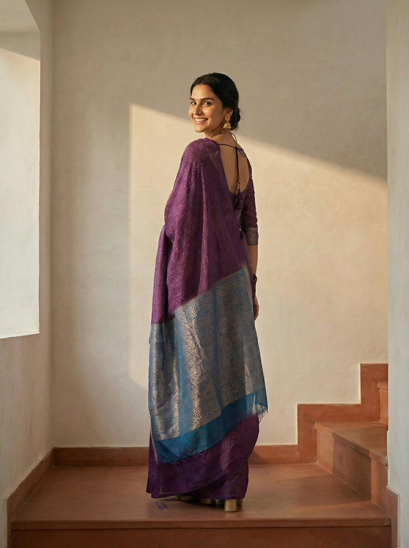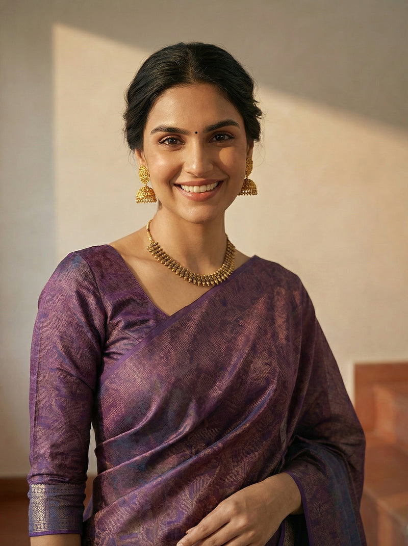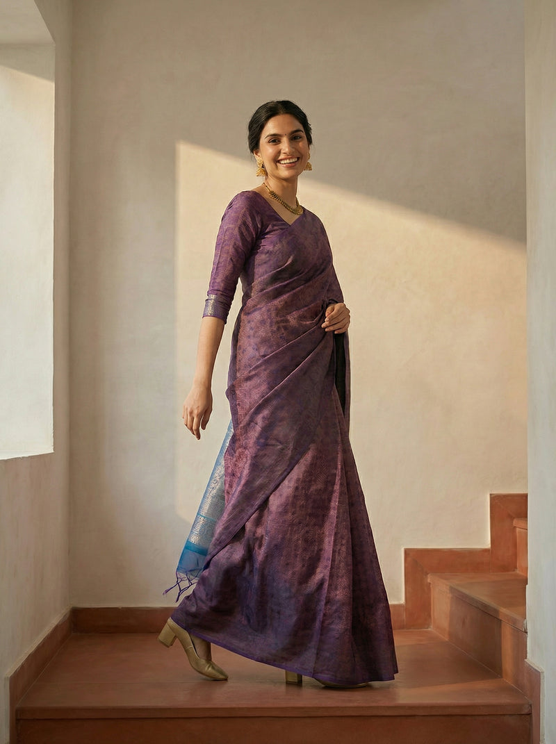 Synthetic Purple Traditional Saree with Woven Pattern