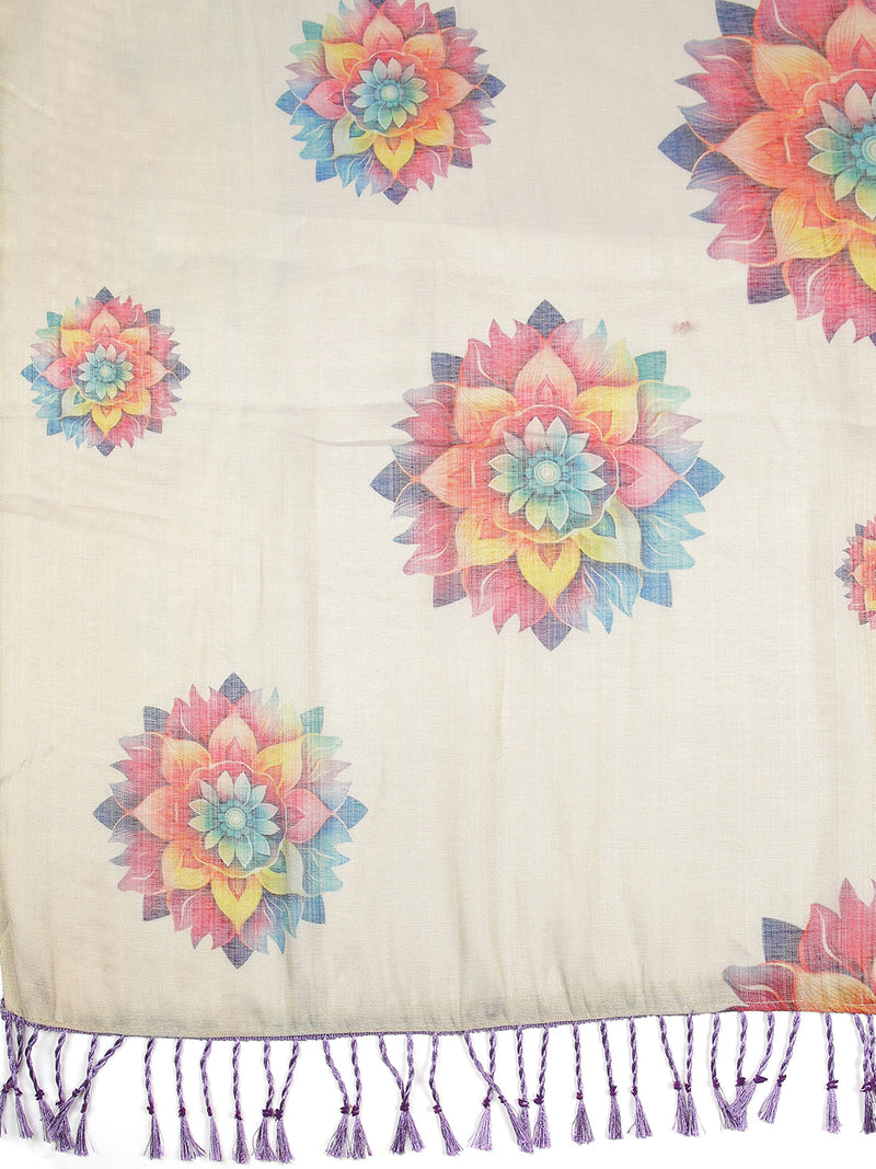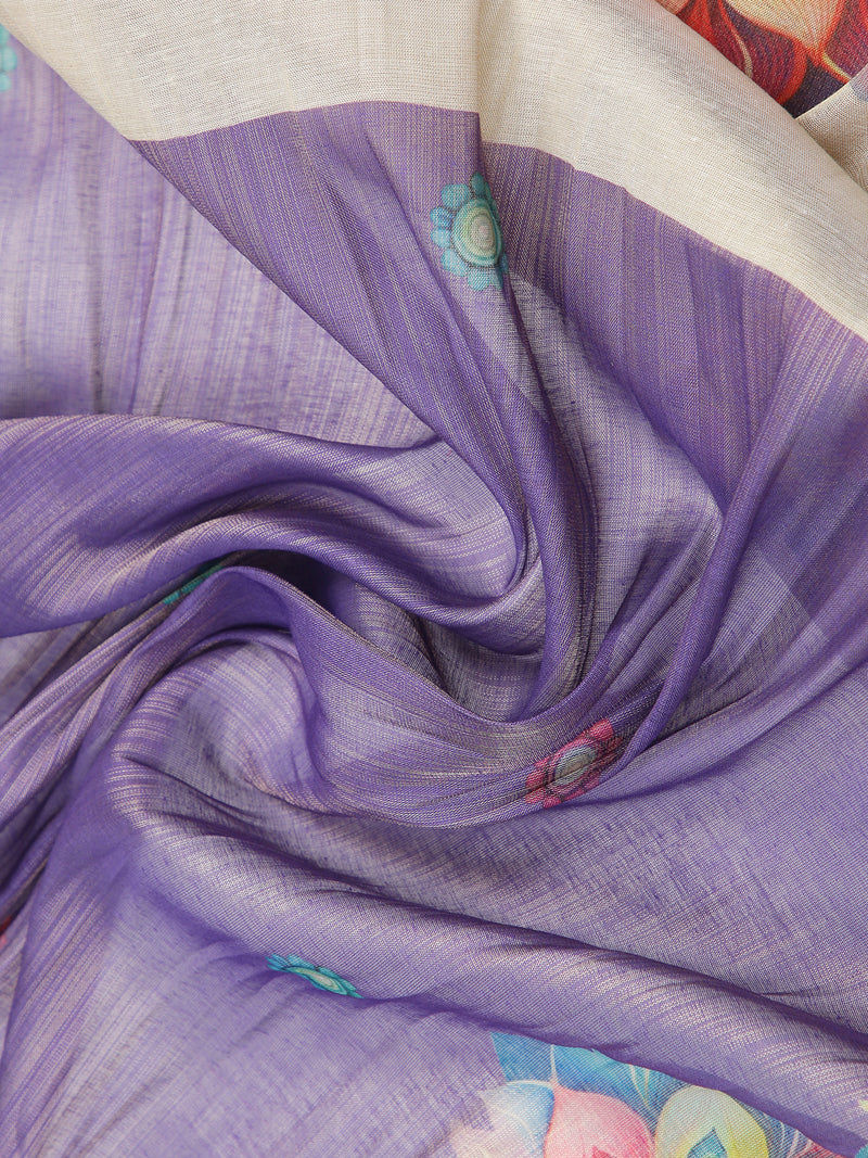 Drape yourself in the elegance of this violet tissue saree paired with a golden pallu, featuring intricate floral designs across the body. The rich color combination and lightweight fabric make it perfect for festive occasions and celebrations.