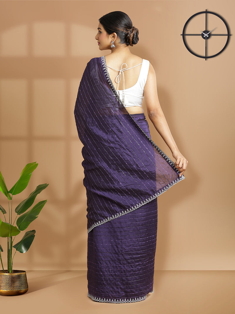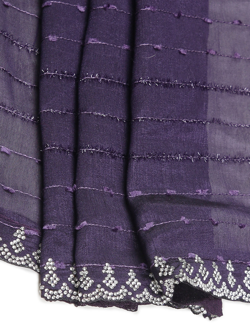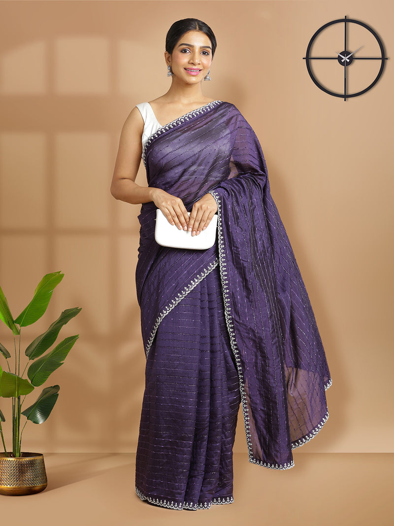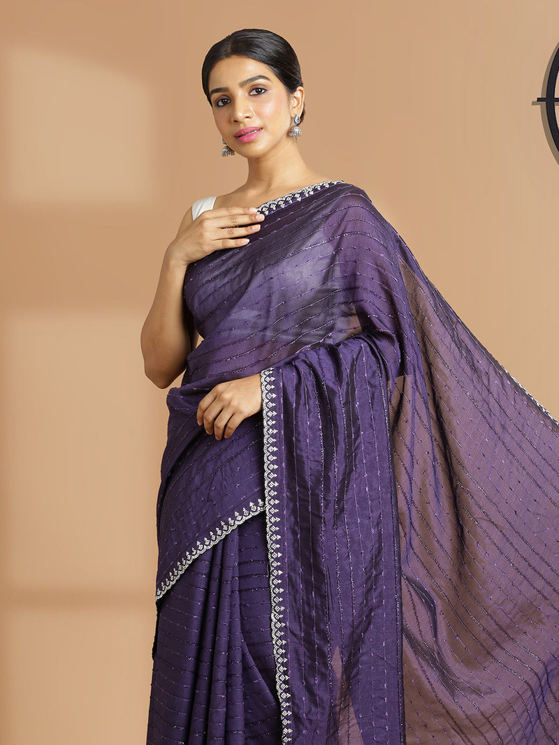 Violet Color Vijithra Silk Saree With Horizontal Thread Stripes Over Body