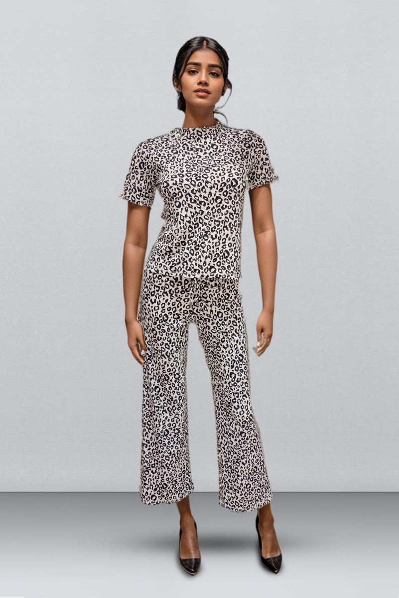 White Color Banyan Half Sleeve Cord Set With Ankle Length Bottom