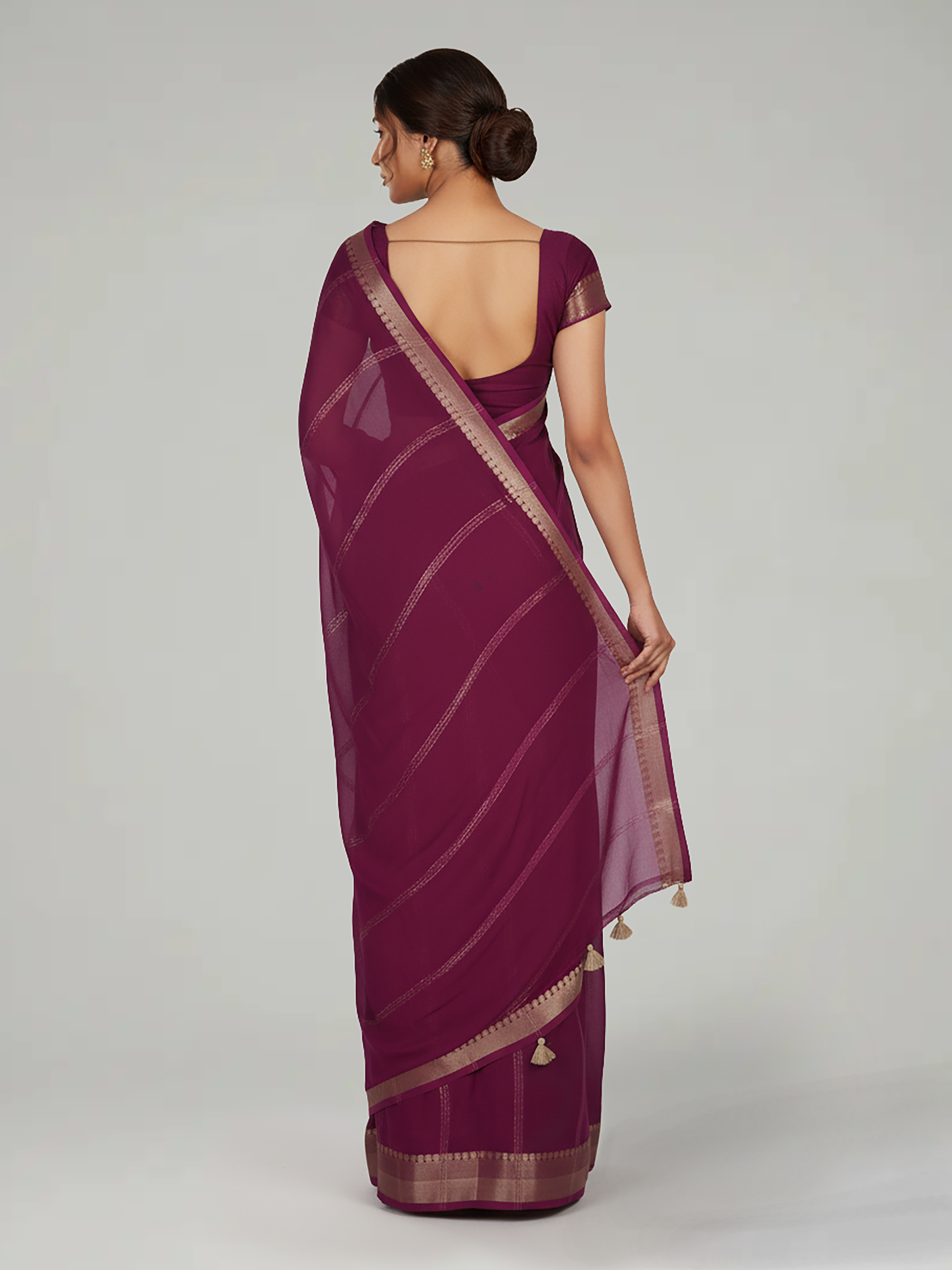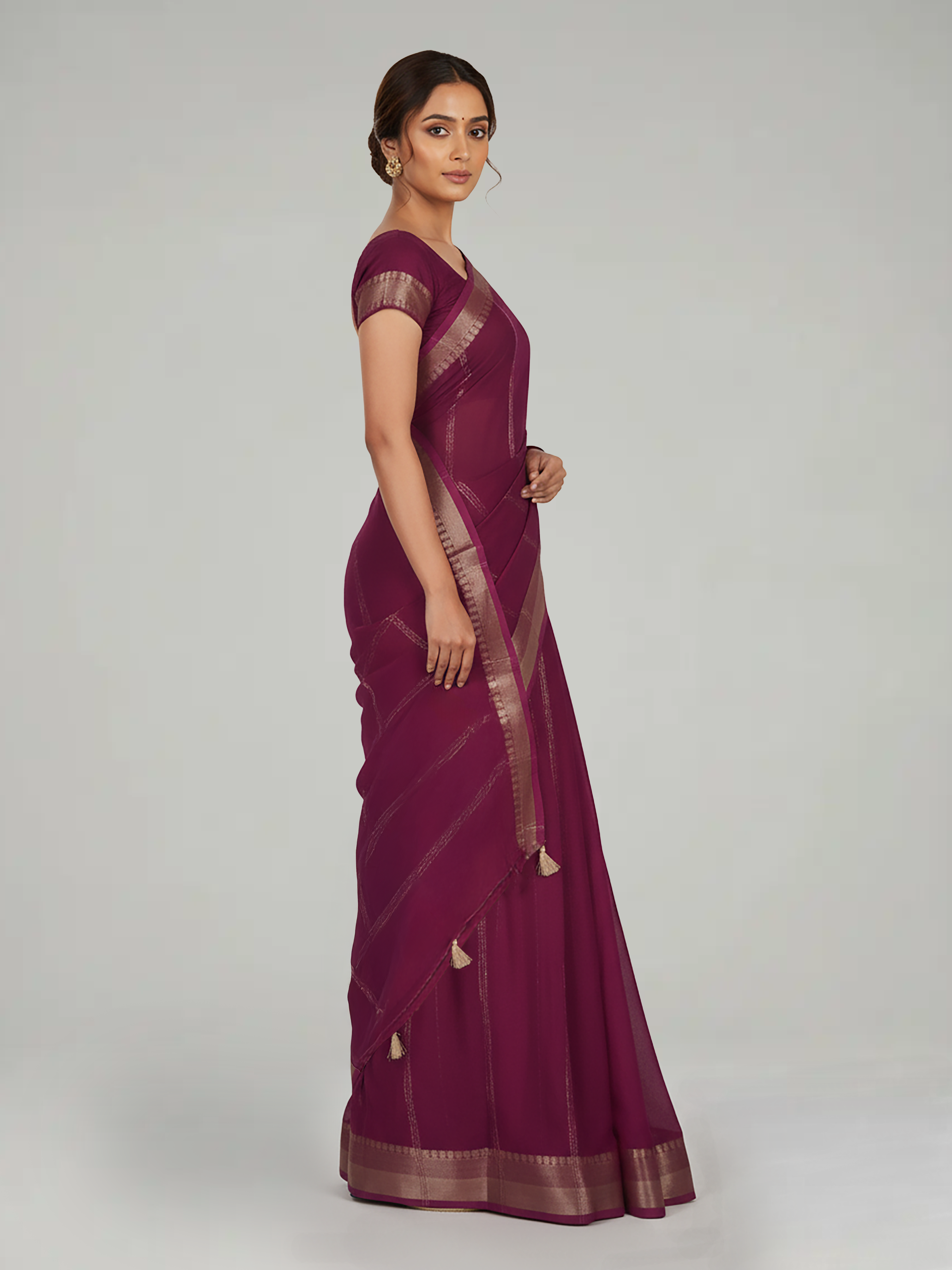 Wine & Cream Georgette Saree