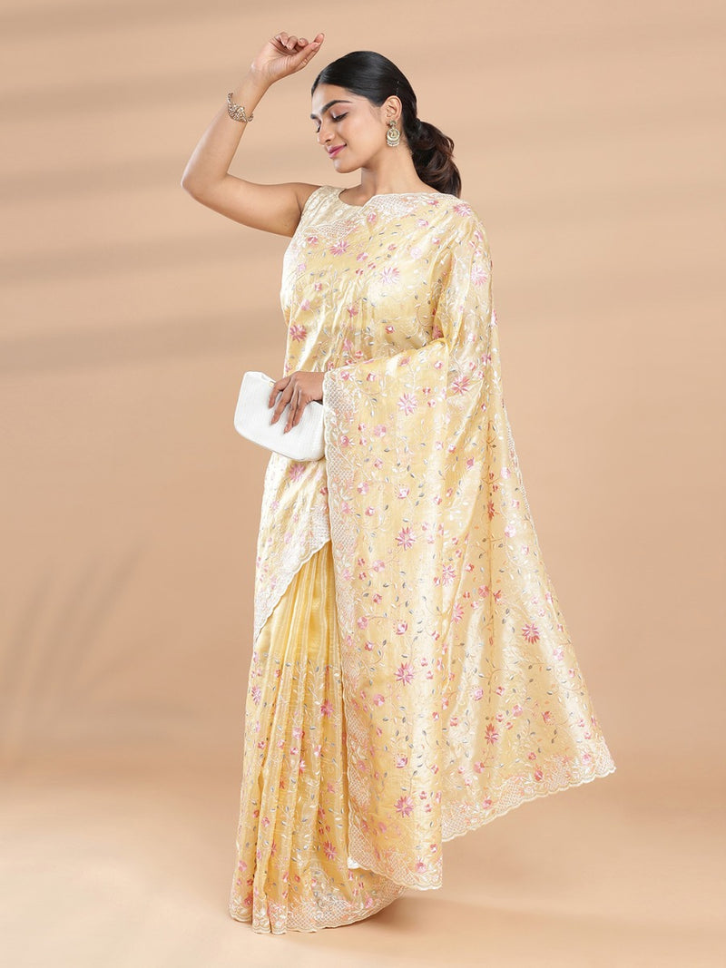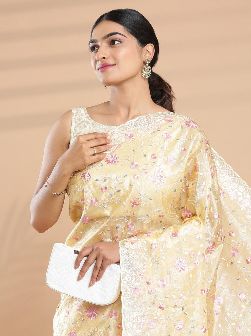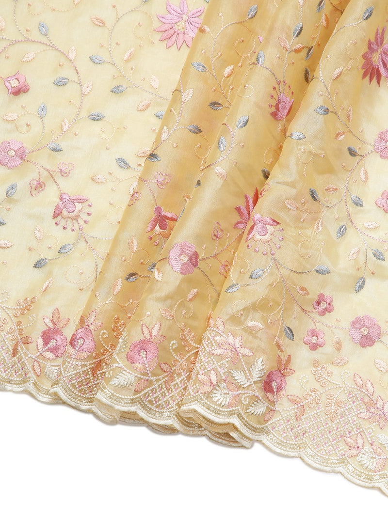 The blouse worn by the model might be for modelling purpose only. Check the image of the blouse piece to understand how the actual blouse piece looks like.